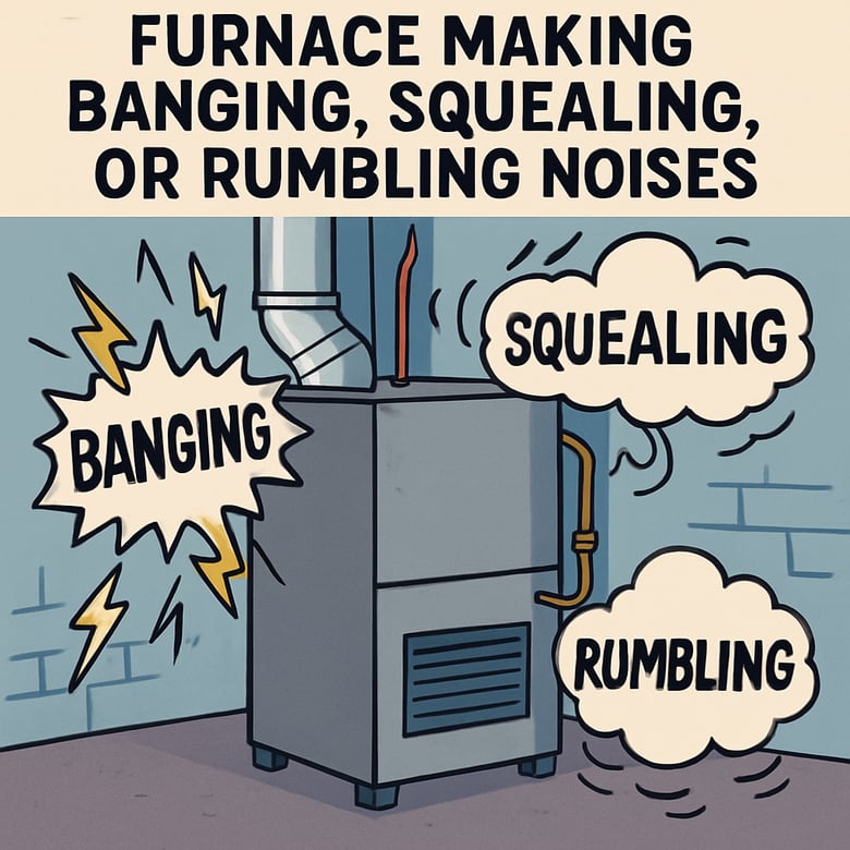 Banging, squealing, or rumbling from a furnace usually points to ignition or mechanical trouble. Banging often comes from delayed ignition or duct expansion, squealing from worn belts or bearings, and rumbling from burner or vibration issues. Most repairs run $150–$1,200; a full replacement typically costs $2,635–$5,610 installed.