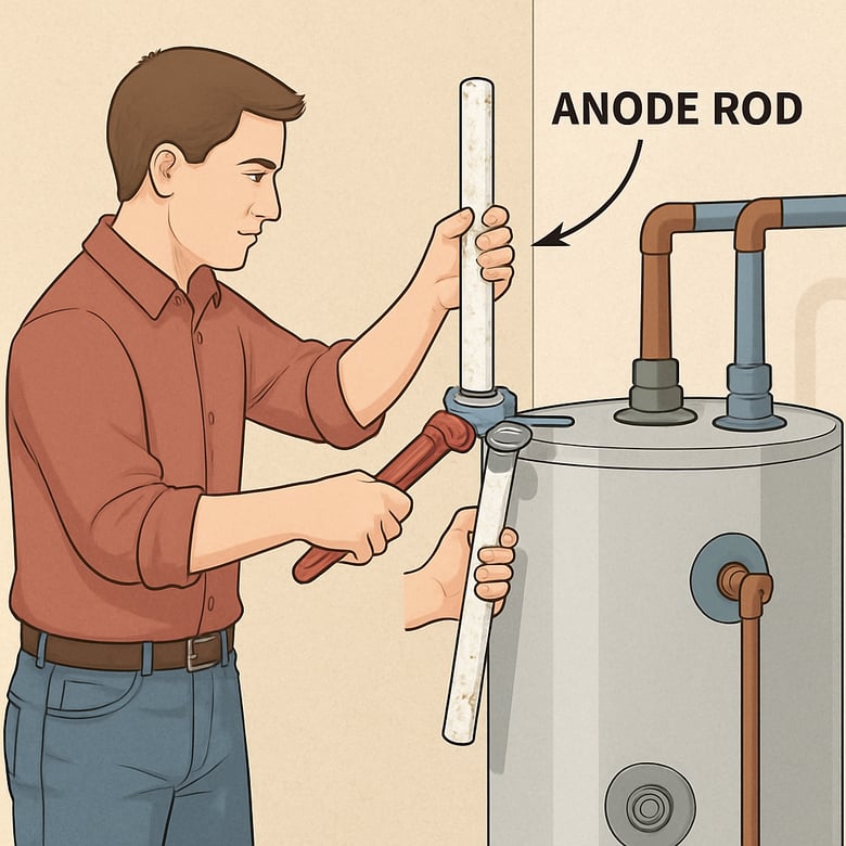 I’ve been called into hundreds of homes where the water heater failed early, and most of those failures started with a worn-out anode rod homeowners didn’t even know existed. Once the rod stops protecting the tank, corrosion takes over quickly—especially in our region’s hard water.