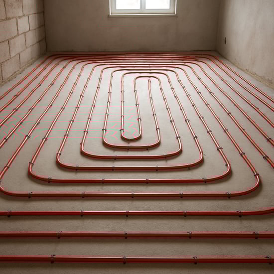 A radiant system heats surfaces—most commonly floors—using hot water or electric elements. Heat rises naturally into the space, creating even temperatures without moving air.